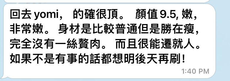 体验:1000/1hr 1900/2hrs 夜On 天On